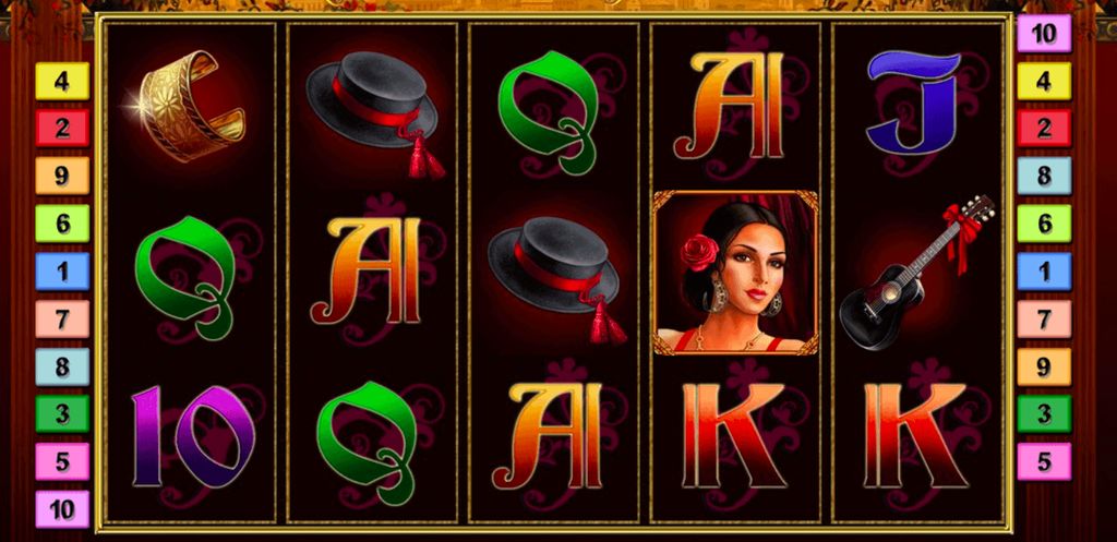 Le bracelet doré et le somptueux collier servent également de symboles gagnants dans cette machine à sous. Tous deux te rapportent encore 59 % plus que la guitare ou le chapeau, à condition de tomber en cinq exemplaires les uns à côté des autres sur les rouleaux. Mais avec cinq portraits de la danseuse de flamenco, tu décroches encore plus de deux fois plus qu’avec les ustensiles du musicien. Trois symboles de la rose dorée suffisent, quant à eux, à déclencher des tours gratuits et te rapportent également un gain élevé. Les multiplicateurs de ces deux symboles ne sont surpassés que par celui du torero. Si tu réussis l’exploit de faire entrer le torero en jeu sur tous les rouleaux, le long d’une ligne de paiement, tu remportes immédiatement une somme deux fois plus élevée que pour les deux symboles précédemment mentionnés.