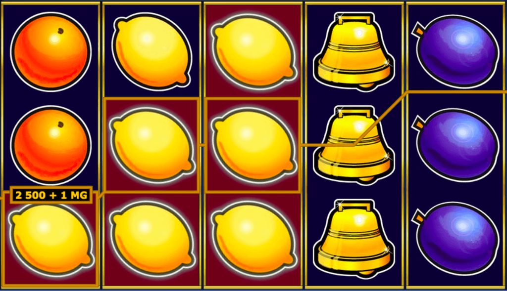 La cloche dorée est particulièrement populaire. Elle n’apparaît pas aussi souvent que les fruits, mais beaucoup plus souvent que le 7 lumineux. Cinq cloches te rapportent un gain qui peut atteindre jusqu’à 50 fois ta mise. Tu trouveras également des symboles de prunes, cerises, citrons et oranges, qui te rapportent déjà neuf fois ta mise si tu parviens à les aligner en cinq exemplaires identiques les uns à côté des autres sur les rouleaux. Les pommes et les melons sont un peu plus généreux : leur gain vaut la moitié de celui des cinq cloches. En plus, contrairement à la cloche et au 7 lumineux, ces deux fruits apparaissent souvent sur les rouleaux, ce qui explique qu’ils soient très appréciés des joueurs. Enfin, le 7 lumineux est le symbole le plus important dans ce jeu classique. Avec cinq 7 sur une ligne, tu as de quoi exploser de joie : en effet, tu remportes cinq fois plus qu’avec la cloche dorée.