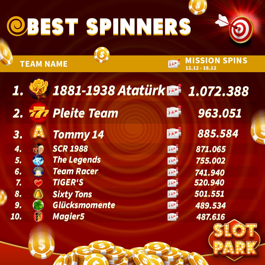 Competition Dates: 12.12-18.12 The Top 10 Teams with the highest number of Team Missions Spins are rewarded with a well-deserved bonus! Congratulations to all participating teams! It's easy to take part! 1. Spin as much as possible in Team Missions 2. Check the rankings every Friday 3. Be the …
