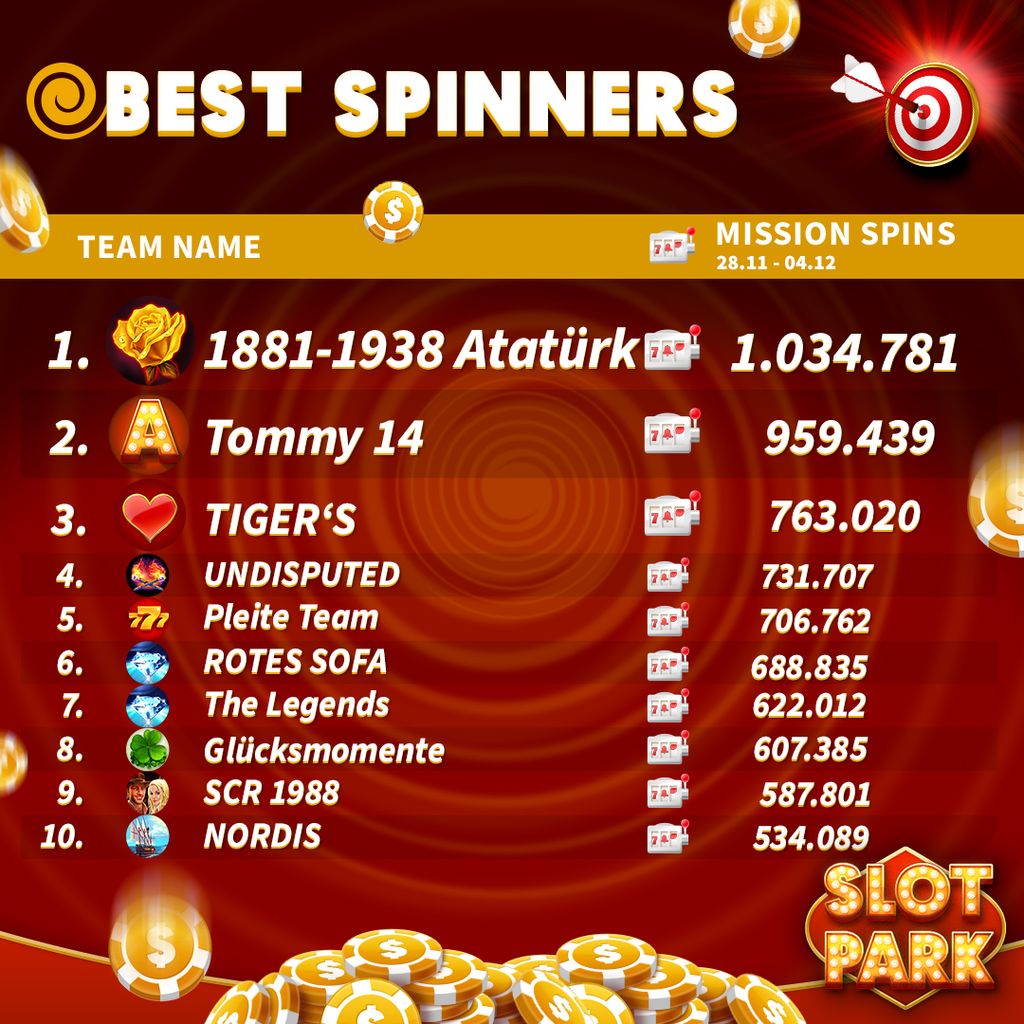 Competition Dates: 05.12-11.12 The Top 10 Teams with the highest number of Team Missions Spins are rewarded with a well-deserved bonus! Congratulations to all participating teams! It's easy to take part! 1. Spin as much as possible in Team Missions 2. Check the rankings every Friday 3. Be the …