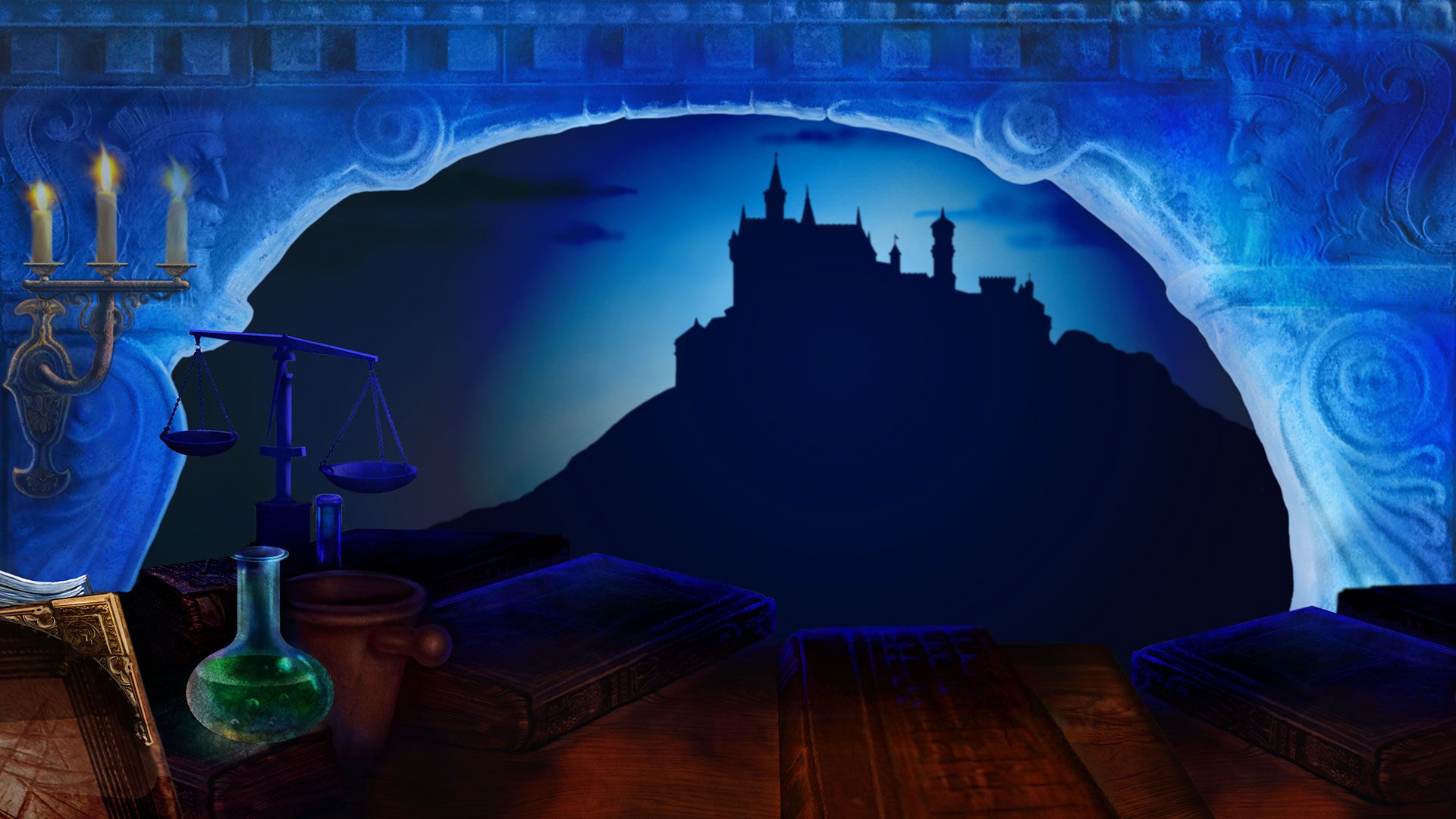 Things get a little bit more interesting with the red and blue win symbols – the laboratory and the banquet. Seemingly all about the pleasures of the flesh, the red symbol features exotic fruit, expensive wine and all things sensual. The blue icon symbolizes science, the thirst for knowledge and the power contained within it. Both symbols earn you up to eight times as much as symbols of the previous tier, granted you managed to spot five of them across your reels.