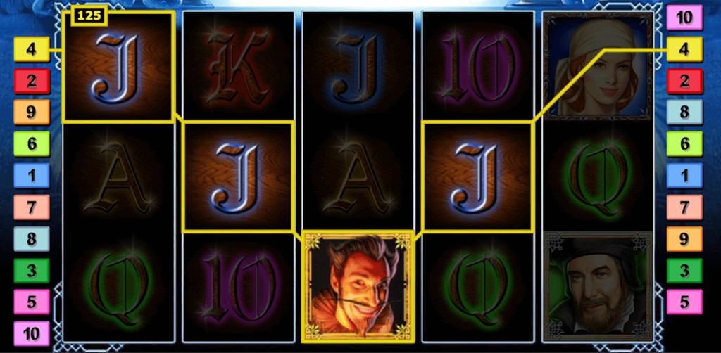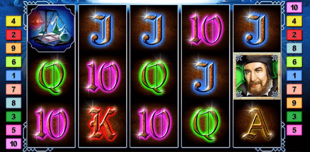 The highest win possible in this game is earned once five scholar symbols find their place along a win line. Three times as much as portraits of Mephisto would get you – plenty of reason to seek his advice then!