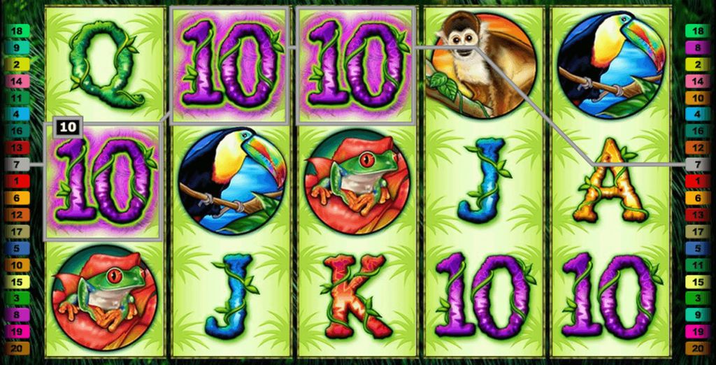 During free spin mode animal icons become even more important. A symbol is being picked at random and may substitute for any other symbol needed to complete a winning combination across a win line. They are more than just regular wilds, they basically guarantee you a win during later rounds! This way, each animal portrait, be it frog, leopard, monkey or toucan, can become the highest paying symbol of your gaming session. This mechanic may also explain why Totally Wild™ is becoming so insanely popular on Slotpark, it’s just too many damn free spins!